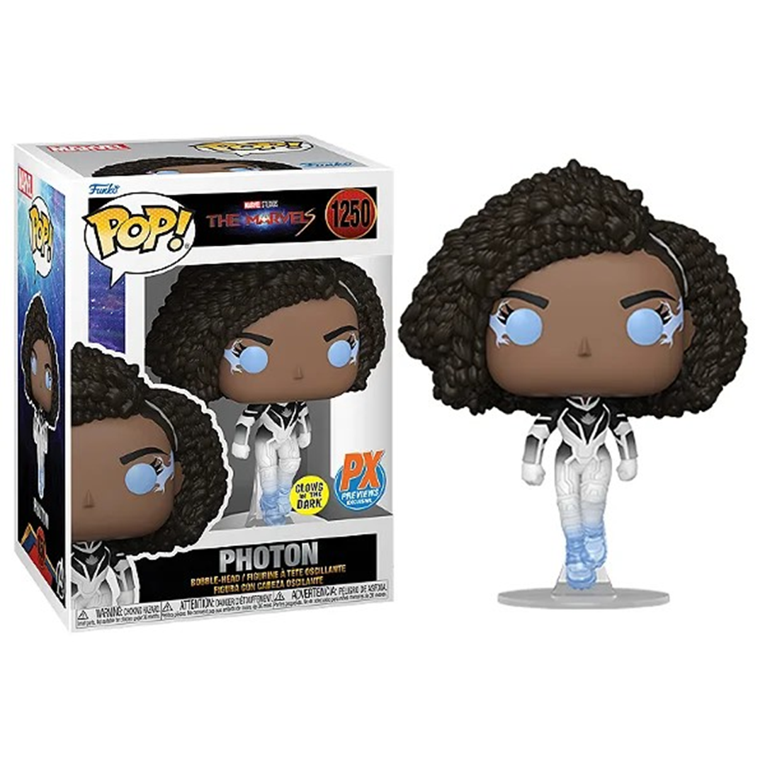 Expanda seu universo Marvel com a figura oficial da Photon (As Marvels). Este Funko Pop! número 1250 captura todos os detalhes da personagem com a qualidade premium que sua estante merece.